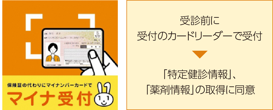 当院では、「医療情報・システム基盤整備体制充実加算」を算定しております。「医療情報・システム基盤整備体制充実加算」は、保険医療機関において、患者様の薬剤情報や特定健診情報等を活用し、質の高い医療を提供する体制について評価するものです。受付時には、正確な情報を取得し、活用するためマイナ保険証(マイナンバーカード)によるオンライン資格確認などの利用にご協力をお願いいたします。