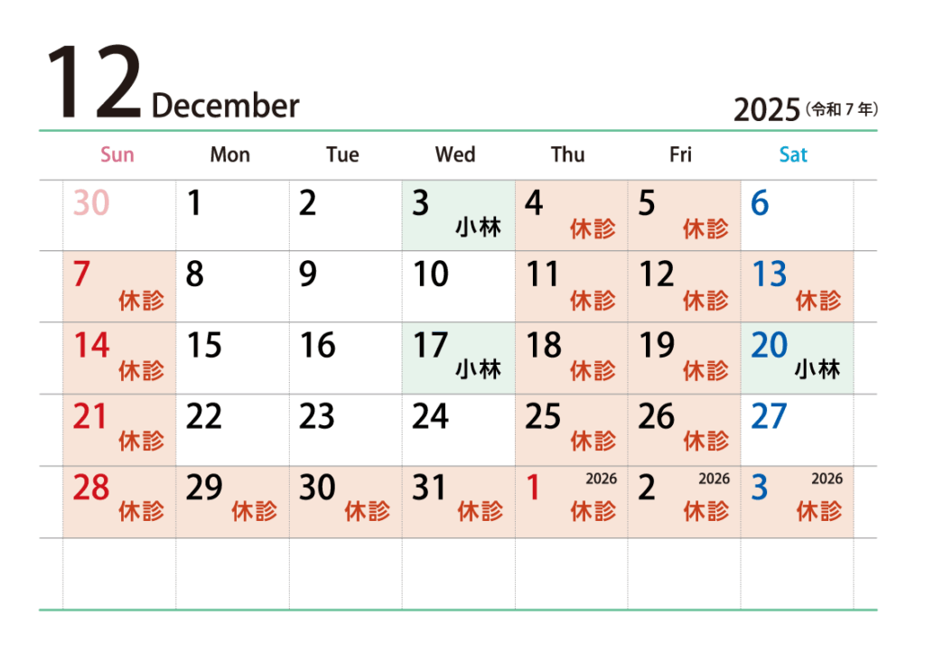 精神科 12月の診療に関してのお知らせ - 2025-10-06精神科