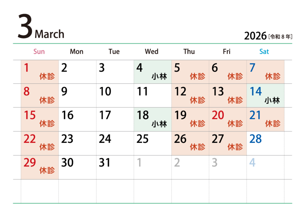 精神科 3月の診療に関してのお知らせ - 2025-12-10精神科