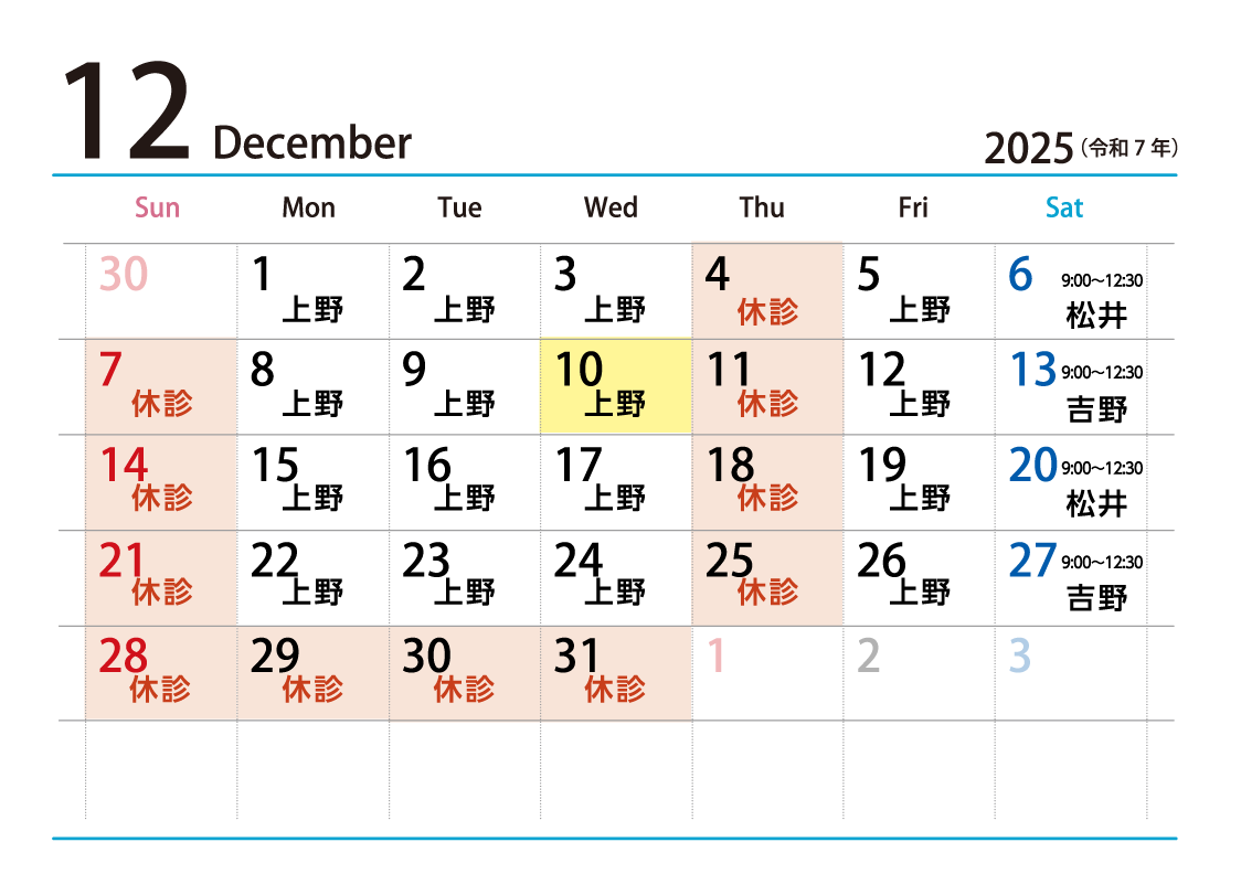 整形外科 11月・12月の診療に関してのお知らせ - 2025-09-29整形外科