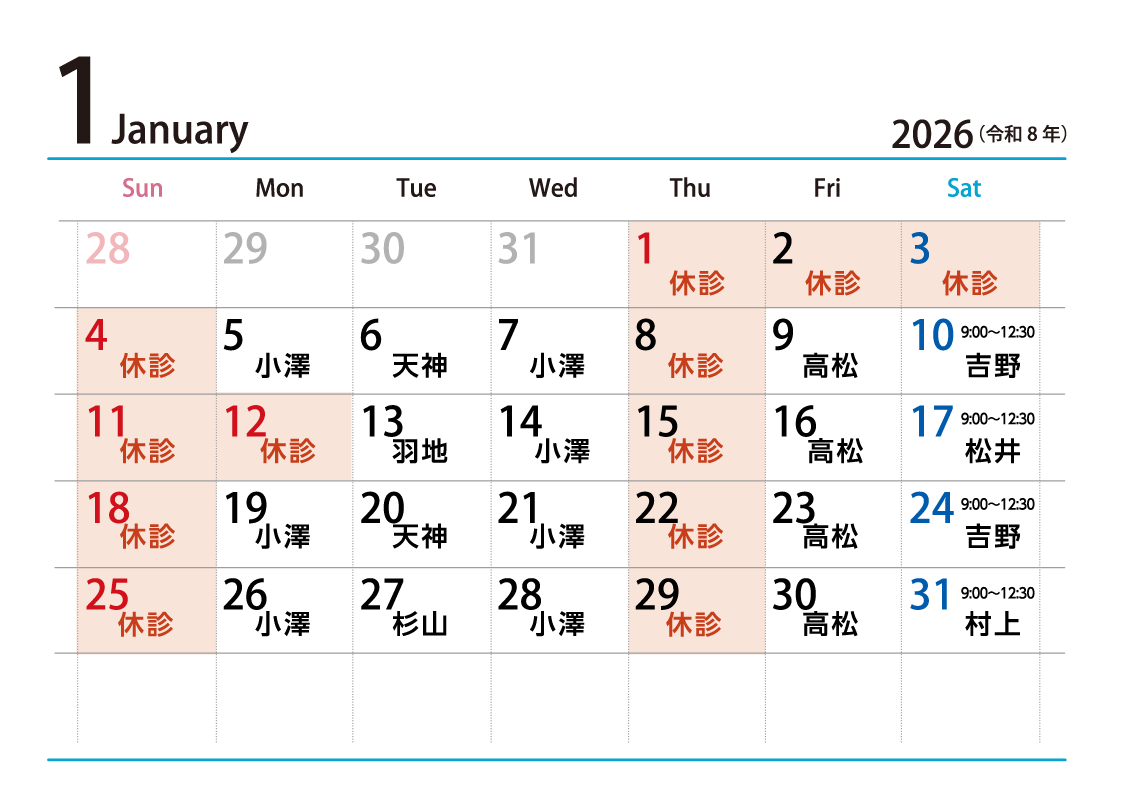 整形外科 1月の診療に関してのお知らせ - 2025-12-01整形外科