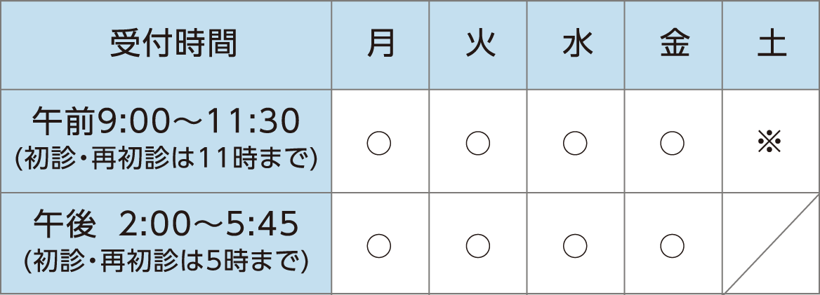 外来混雑のため、早めに受付を終了することがあります。