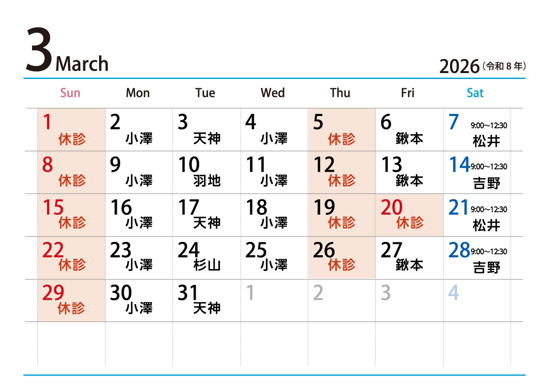 整形外科 3月の診療に関してのお知らせ - 2026-01-21整形外科