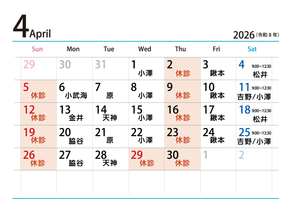 休診日 木曜日・土曜日午後・日曜日・祝日